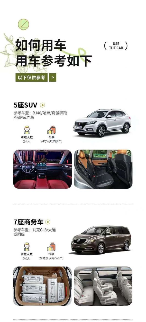 備注:車型承載力有限,攜帶行李為24寸或以下行李箱。