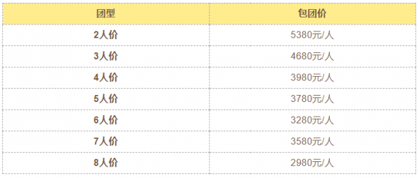 成人3180元/人,兒童2080元/人(只含車位、保險(xiǎn))
