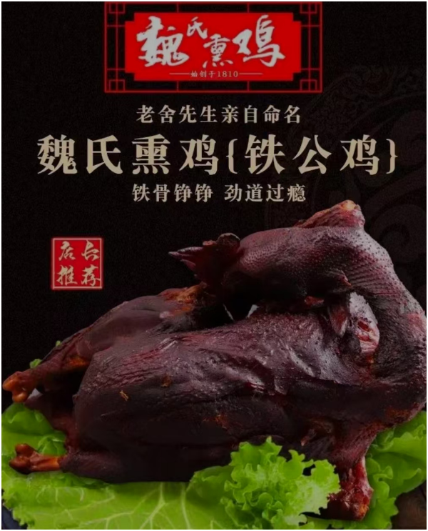自此,魏氏熏雞代代相傳,歷經(jīng)七代傳人,已有200多年的歷史。魏氏熏雞歷經(jīng)七代傳承,不斷豐富和發(fā)展了餐飲文化,成為魯菜中的代表。其先后被評為1991年廣州商品交易會最佳地方名吃、1997年中國山東旅游博覽會優(yōu)秀旅游商品、2002年中國江北水城(聊城)文化旅游節(jié)指定產(chǎn)品等。2009年,魏氏熏雞被列入第二批山東省非物質(zhì)文化遺產(chǎn)名錄。此外,魏氏熏雞還曾被老舍等著名作家品嘗并贊譽,被譽為“聊城鐵公雞”。