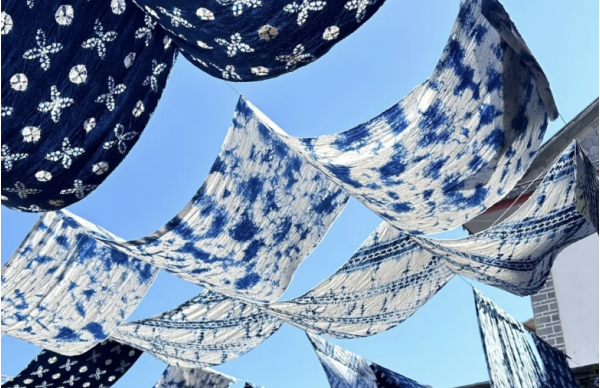 制作時(shí),以棉白布為載體,用天然藍(lán)靛作染料,經(jīng)手工繪圖、扎縫、浸染、漂洗等工序完成。通過(guò)獨(dú)特的扎結(jié)技法,布料浸染后形成藍(lán)白相間的精美圖案,常見的有蝴蝶、花草、幾何紋樣等,每一種都寄托著白族對(duì)美好生活的向往。