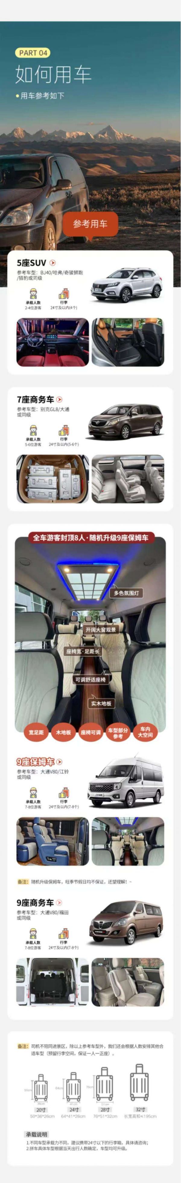 7-8位游客:隨機(jī)升級乘坐9座保姆車(節(jié)假日不能保證團(tuán)團(tuán)升級)或9座商務(wù)車