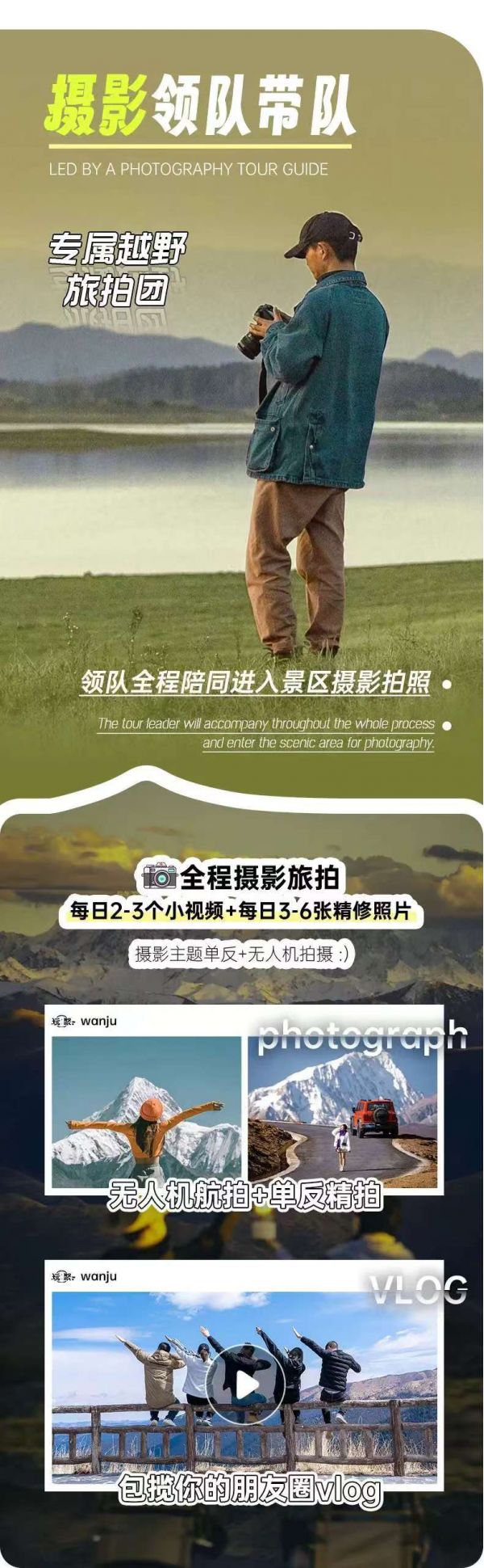 (3)在旅行過程當中,是否能出片,出什么樣的片子,是天氣,光線,季節(jié)等綜合因素決定的,團隊不可能因為某個景點未拍到滿意的片子而增加停留時間。