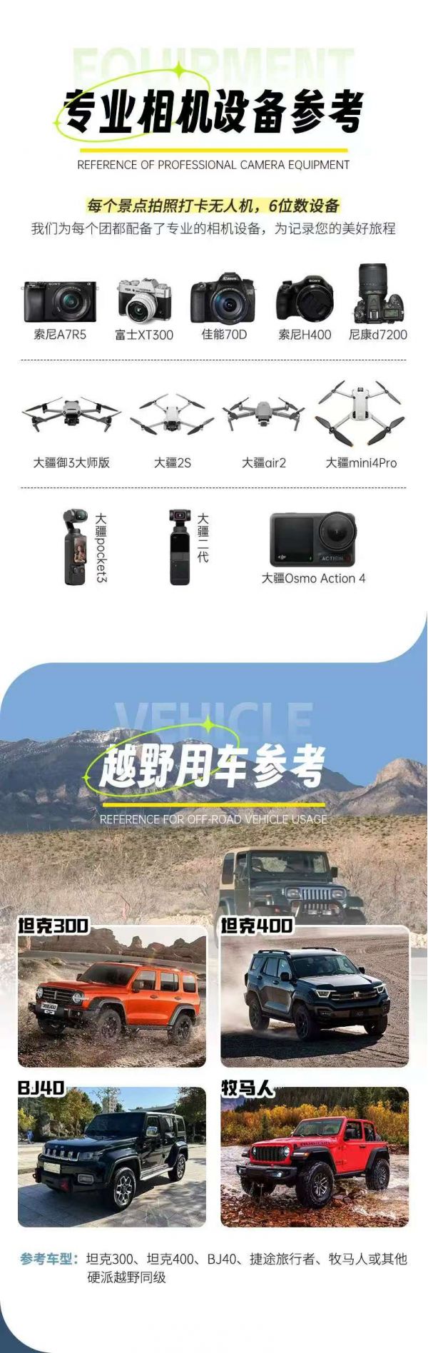 (3)本線路沒有“代購業(yè)務”,請不要在團隊中或者完團后,請求駕駛員代購任何產(chǎn)品,如有需要請自行篩選、購買。