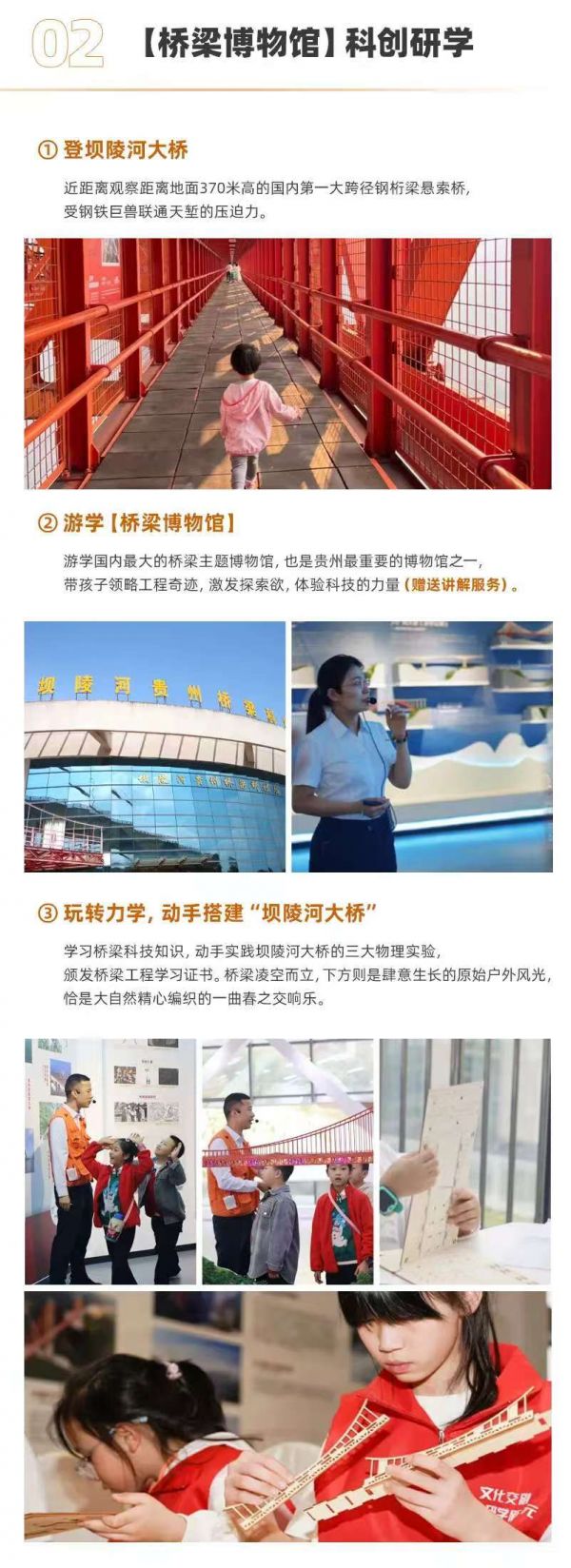 1、游學(xué)國內(nèi)最大的橋梁主題博物館,也是貴州最重要的博物館之一,帶孩子領(lǐng)略工程奇跡,激發(fā)探索欲,體驗(yàn)科技的力量(贈送講解服務(wù))。