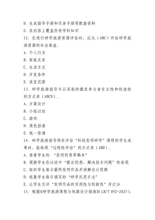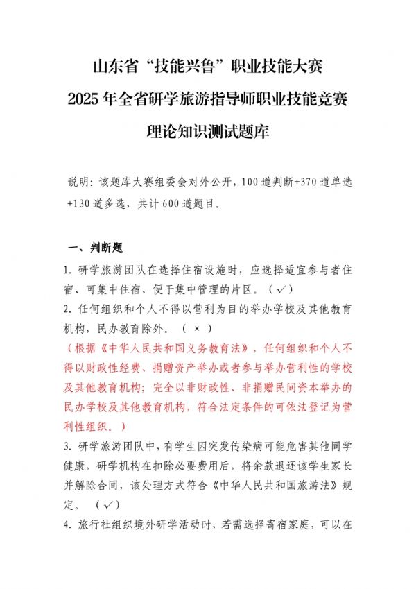 下列鏈接為”山東省“技能興魯”職業(yè)技能大賽 2025 年全省研學旅游指導師職業(yè)技能競賽理論知識測試題庫“