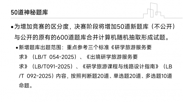 首頁 >> 資訊平臺 >> 劉寶平工作室__Mr. Liu Stu >> 劉老師課堂 >> 大賽指導(dǎo) >> 2025年指導(dǎo)大賽 >> 【研學(xué)】2025 年全省研學(xué)旅游指導(dǎo)師職業(yè)技能競賽