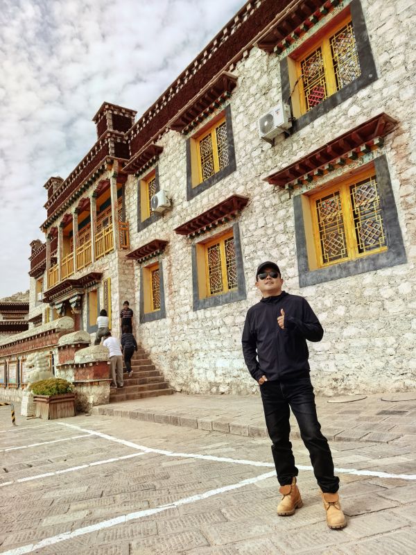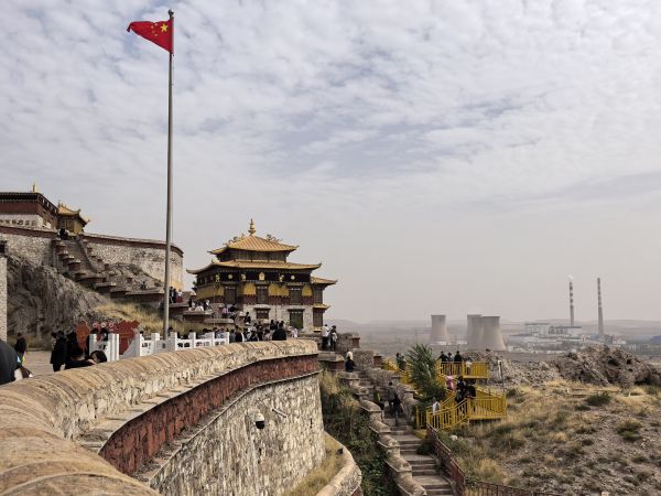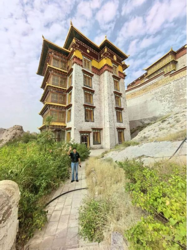 視線盡頭的圖海山漸漸清晰,山頂紅墻金頂?shù)慕ㄖ涸陉柟庀赂裢饷C穆——這便是此行的目的地之一,滿巴拉僧廟。