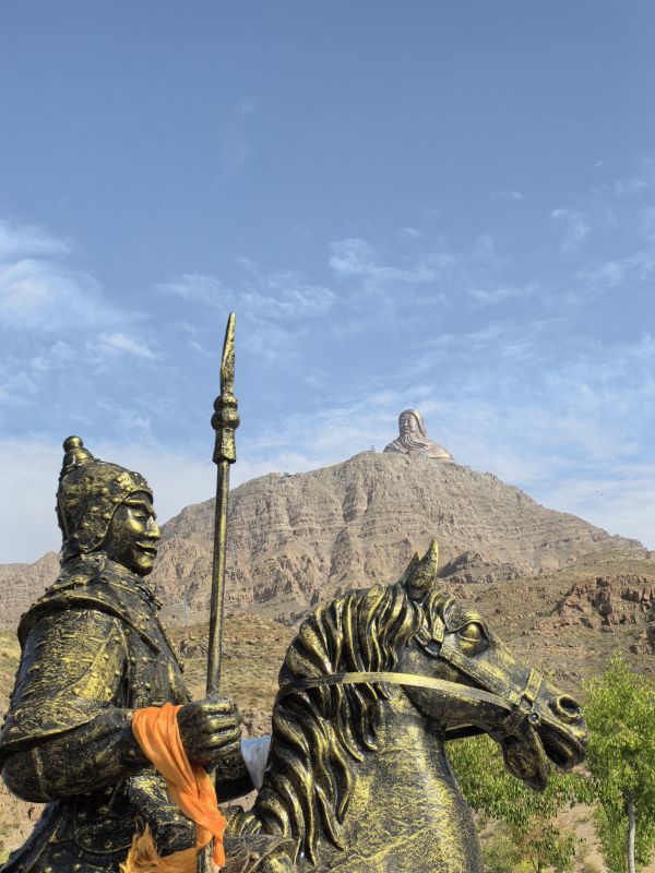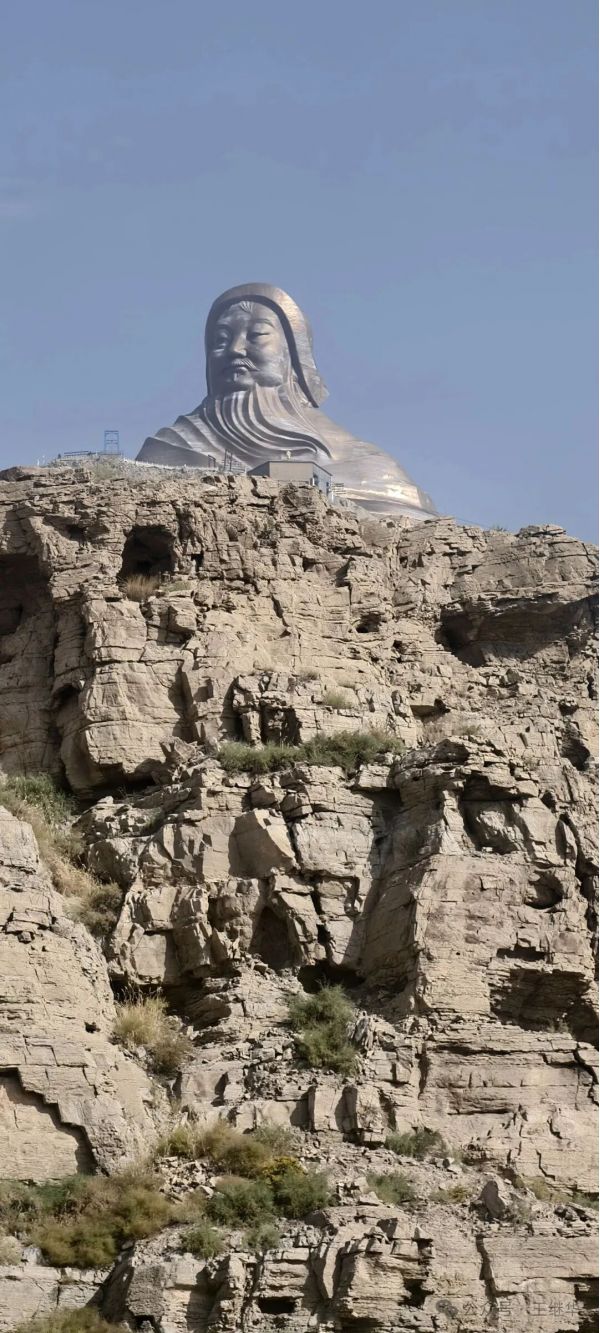 離開黃河邊,我們前往附近的甘德爾山,那里有一座壯觀的成吉思汗雕像。