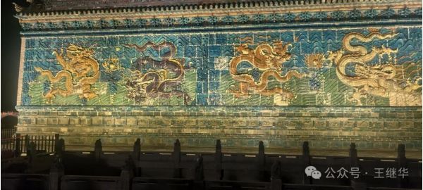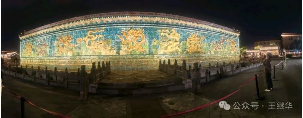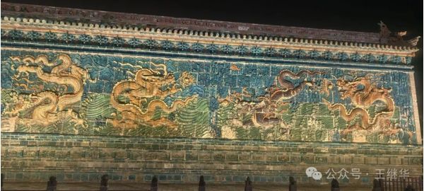 行至九龍壁時(shí),我們特意停下車。白日里或許能看清釉色的細(xì)微紋路,但夜晚的九龍壁,在燈光的映襯下更顯靈動(dòng)。