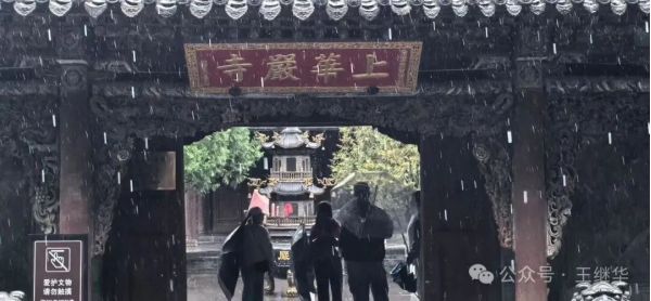 再冒驟雨、裹著7℃寒氣奔向華嚴(yán)寺時(shí),朱紅山門(mén)正蒸騰著朦朧水霧。檐角銅鈴在風(fēng)雨中低吟,將千年古剎的莊嚴(yán)揉進(jìn)濕潤(rùn)的空氣里,腳下青石板積著水洼,倒映著大雄寶殿的飛檐斗拱,恰似把整座寺院裝進(jìn)了鏡面,恍惚間不知是在人間還是鏡中。