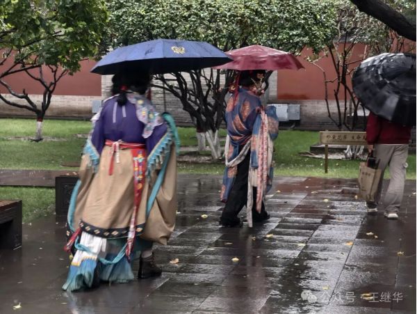 唐裝早已被雨浸透,貼在身上該有多涼?為了美,真真是拼了??粗齻兊纳碛叭谌氚唏g光影,忽然覺(jué)得這場(chǎng)雨來(lái)得恰好:是寒雨讓古寺更顯沉靜,也是那些不懼風(fēng)雨的身影,讓千年華嚴(yán)寺的秋日多了段生動(dòng)注腳,只是這生動(dòng)里藏著我無(wú)法理解的執(zhí)著,倒比身上的寒意更讓人悵然。