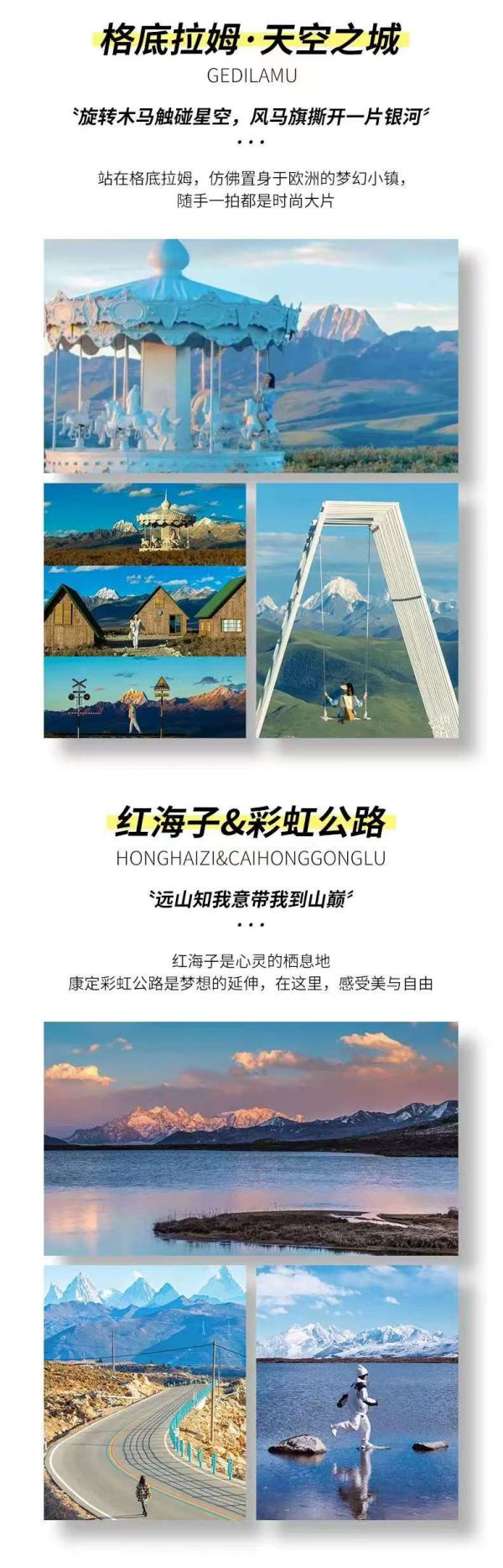 但領(lǐng)隊進(jìn)景區(qū)拍攝需要同車一起AA領(lǐng)隊門票費用,門票預(yù)估:紅海子清潔費15-30元/人;魚子西/格底拉姆/八郎生都清潔費30元/人;稻城亞丁(旺季價格)門票+觀光車266元/人、(淡季價格)門票+觀光車240元/人、沖古寺服務(wù)區(qū)至洛絨牛場電瓶車往返80元/人,單程50元/人(可選擇)、洛絨牛場往返騎馬費用300元/人,價格隨季節(jié)浮動(可選擇,不建議乘坐);理塘:套票100元/人;木雅大寺15元/人;四姑娘山雙橋溝:門票80/人+觀光車70/人。
