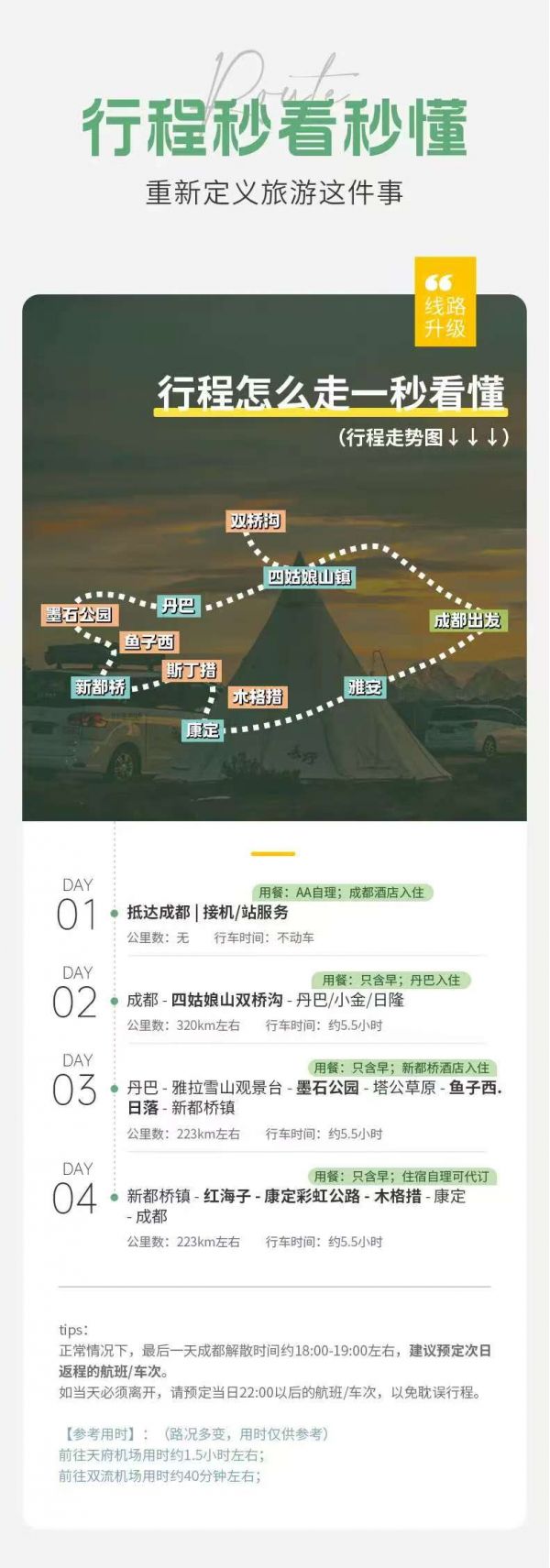 之后沿都汶高速返回成都統(tǒng)一散團(tuán)(由車上游客協(xié)商一致送至統(tǒng)一散團(tuán)點,若協(xié)商不成則由司機(jī)送至三環(huán)內(nèi)就近地鐵站散團(tuán)),結(jié)束本次愉快的旅行。由于川西地區(qū)路況復(fù)雜,山道狹窄,有可能因為堵車而發(fā)生延誤,請大家盡量預(yù)定第二天返程的航班或車次?;氐搅某菧剀暗募?。