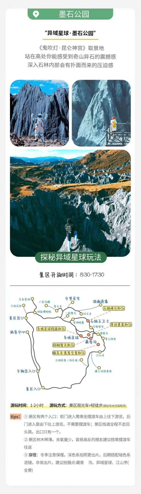 然后我們來到神秘的異世界,墨石公園有著許多千姿百態(tài)的奇幻墨石,忽而是高聳綠地又忽而裸露出冷峻的黑灰?guī)r面,參差起落極具外星球般的異域風(fēng)情。