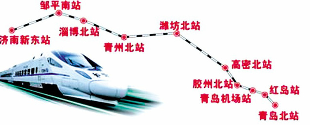 隨著環(huán)境影響報告書的完成,濟南東站、鄒平南站、淄博北站、青州北站、濰坊北站、高密北站、膠州北站、青島機場站和紅島站等9大車站也得以最終確定。9座車站中,濟南東站和紅島站為始發(fā)站,其余7站為中間站。其中濟南東客站設(shè)動車運用所;紅島站則設(shè)動車停車場。