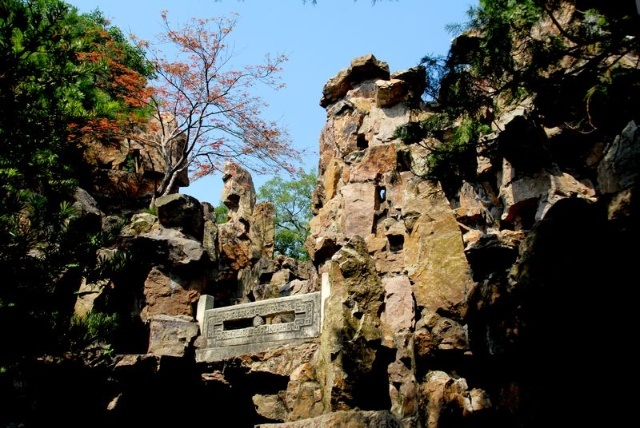 秋景:相傳出自清代大畫家石濤之手筆。秋景用黃山石堆疊而成,山勢較高,面積也較大。整個(gè)山體