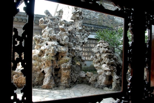 冬景:造園者將冬景安排在南墻之下,背靠高墻幾乎終年不見陽光,遠(yuǎn)遠(yuǎn)望去似積雪未消,地面用白石鋪成。冬山用宣石(石英石)堆疊,石質(zhì)晶瑩雪白,每塊石頭幾乎看不到棱角,給人渾然而有起伏之感。造園者不知是有意還是無意將假山堆疊得如一群獅子,遠(yuǎn)觀似一頭頭雪獅歡騰跳躍,憨態(tài)可掬。南面高墻上有二十四個(gè)風(fēng)音洞,后面的巷風(fēng)襲來,時(shí)而發(fā)出呼嘯之聲。造園者不光利用“雪色”來表現(xiàn)冬天,還巧妙地將“風(fēng)聲”也融合到表現(xiàn)手法中去,令人拍案叫絕。