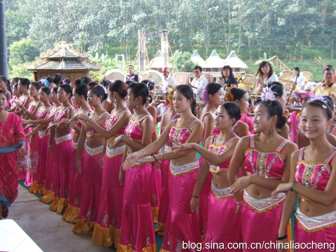 傣族是西雙版納人口最多的少數(shù)民族,有精巧的竹樓,優(yōu)美的孔雀舞。傣族少女服飾精美、容姿秀麗、能歌善舞,是西雙迷人的景致之一。傣族人居住的竹樓是一種干欄式建筑。竹樓近似方形,以數(shù)十根大竹子支撐,懸空鋪樓板;房頂用茅草排覆蓋,竹墻縫隙很大,既通風(fēng)又透光,樓頂兩面的坡度很大,呈“A”字形。竹樓分兩層,樓上住人,樓下飼養(yǎng)牲畜,堆放雜物,也是舂米、織布的地方。傣族男子一般上穿無領(lǐng)對襟袖衫,下穿長管褲,以白布或藍布包頭。傣族婦女的服飾各地有較大差異,但基本上都以束發(fā)、筒裙和短衫為共同特征。筒裙長到腳面,衣衫緊而短,下擺僅及腰際,袖子卻又長又窄。