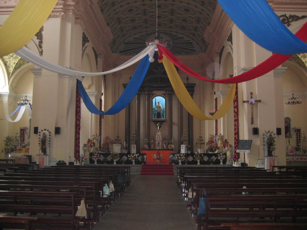 建于一九三八年,其設(shè)計(jì)主要采取澳門主要教堂的巴羅克式風(fēng)格。圣堂外墻以奶白色為主,還有橢圓形的窗戶及鐘樓。
