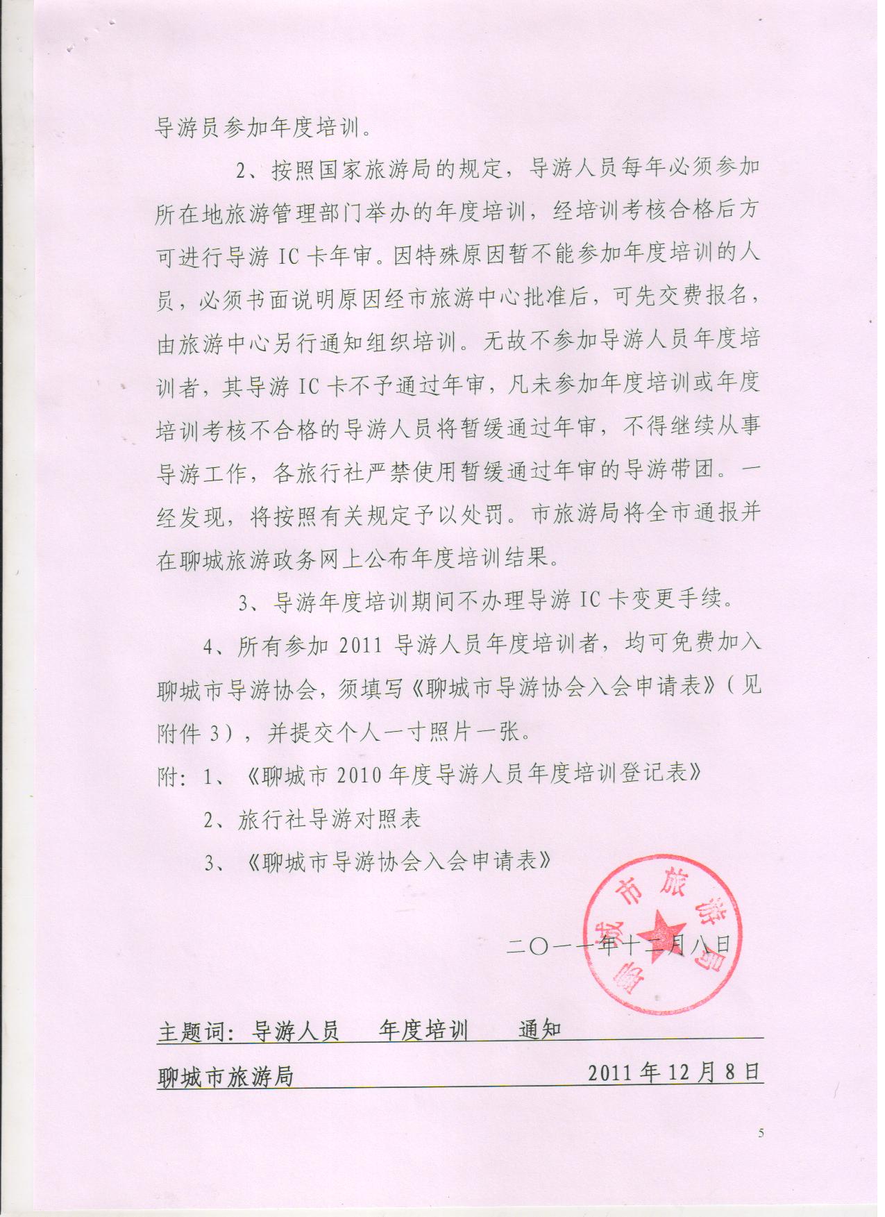 關(guān)于聊城市2011導(dǎo)游人員年度培訓(xùn)公司的通知