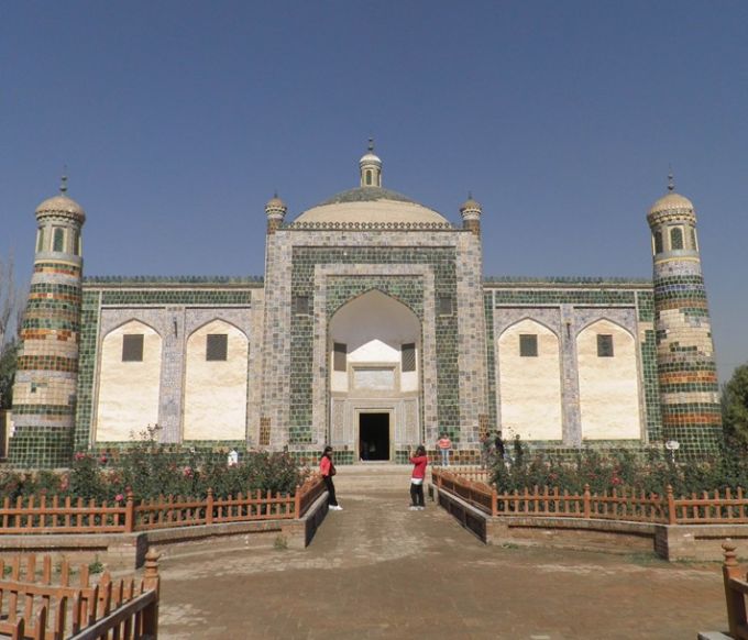 它坐落在喀什市東郊5千米的浩罕村,系自治區(qū)的重點文物保護單位。這是一座典型的伊斯蘭古建筑群,也是伊斯蘭教圣裔的陵墓,占地2公頃。 據(jù)說墓內葬有同一家族的五代72人(實際只見大小58個墓穴)。第一代是伊斯蘭著名傳教士玉素甫霍加。他死后,其長子阿帕克霍加繼承了父親的傳教事業(yè),成了明末清初喀什伊斯蘭教“依禪派”著名大師,并一度奪得了葉爾羌王朝的政權。他死于1693年,亦葬于此,由于其名望超過了他的父親,所以后來人們便把這座陵墓稱為“阿帕克霍加墓”。 版權所有山東聊城聊之旅國際旅行社有限公司,轉載必究! 傳說,埋葬在這里的霍加后裔中,有一個叫伊帕爾汗的女子,是乾隆皇帝的愛妃,由于她身上有一股常有的沙棗花香,人們便稱她為“香妃”。香妃死后由其嫂蘇德香將其尸體護送回喀什,并葬于阿帕霍加墓內,因而人們又將這座陵墓稱做香妃墓”。不過據(jù)考證,香妃并沒有葬在這里,她確切的葬地是在河北遵化清東陵的裕妃園寢。