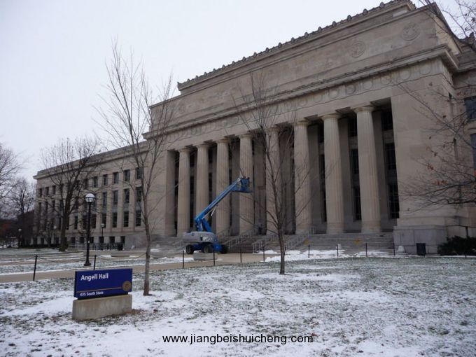 密歇根大學(xué)安娜堡(University of Michigan-Ann Arbor,簡稱UM或UMich)主校區(qū),是一個典型的大學(xué)城,風(fēng)景優(yōu)美,氣候宜人,在全美最適宜居住的城市中排名第七,距離美國著名的汽車城底特律三十分鐘的路程。學(xué)生總數(shù)有3萬9千人,其中1萬5千人為研究生。