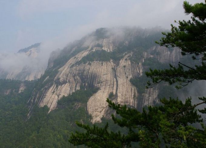 玉筍雄峰。和跑馬梁一樣,因?yàn)閹r株——一種不和諧的侵入巖體,上升的巖漿沖擊覆蓋其上的地層,地層便向上隆起,形成圓頂狀,當(dāng)圓頂狀之上的地層被剝蝕,即形成的圓形山頂。形狀象玉筍,又如常娥奔月,且歌且舞,靈秀優(yōu)美。
