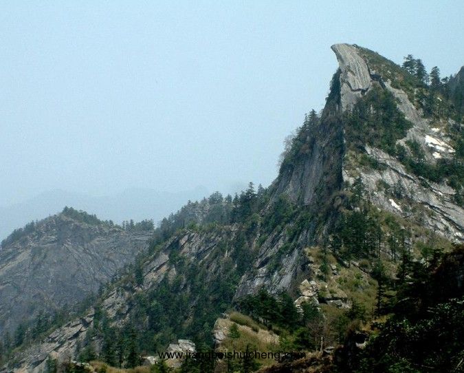 寶鼎峰。遠(yuǎn)遠(yuǎn)看去,云霧裊裊,山峰象是一個(gè)巨大的寶鼎。很想攀援而上,觸摸象征權(quán)利和地位的寶鼎,怎奈前途艱險(xiǎn),殺機(jī)四伏,只好仰天觀望,等待時(shí)機(jī)。