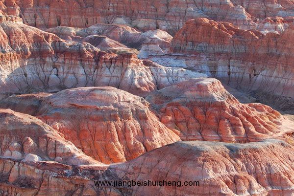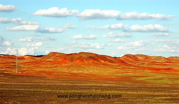 將軍戈壁上一處紅色丘陵區(qū),由數(shù)百個大小不等的紅色山包組成,總面積大約10平方公里。山體的高度多在20—30米之間,頂部呈平滑圓弧狀,周圍坡度平緩,山包之的洼地也是一片火紅。這些紅色丘陵綿延起伏,形成非常壯觀的地文景觀?;馃降纳襟w由磚紅色和桔黃色的巖石構成,色彩艷麗,石質(zhì)堅硬,為侏羅系地質(zhì)構造。版權所有,山東聊城聊之旅國際旅行有限公司轉(zhuǎn)載必究!陽光下的火燒山真像一片火海,那些起伏的紅色山頭就像升騰的火焰,你的第一感覺就是仿佛來到了西游記里的火焰山?;馃降膸r石原為泥巖,由于地下的煤層自燃,讓其燒烤成現(xiàn)在的模樣,因而地質(zhì)表面到處散落著被熔變的巖石。這些巖石不但質(zhì)地堅硬,而且色彩鮮艷,形狀奇特,具有一定的觀賞價值。由于火燒山油田的開發(fā),火燒山逐漸被人們所熟知,慕名而來的游客日漸增多,火燒山將成為重要的旅游勝地。
