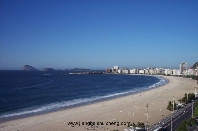 里約山秀,也美。走下山,除了市中心巨大的淡水湖外,海邊大大小小的沙灘一個接連一個,它們像是掛在里約“頸脖”上的一串晶瑩奪目的項鏈,散發(fā)著誘人的魅力。最著名的是“科帕卡巴納”海灘,這個新月形的海灘寬百余米。