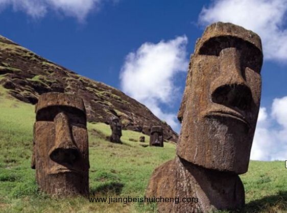 復活節(jié)島上最神秘的還是那1000來個巨形石雕,當?shù)厝税阉鼈兘小澳?。其中不少高約3.7—4.6米,重約20.3噸,還有更大的,足有9.8米,重為91.5噸。版權所有山東聊城聊之旅國際旅行社有限公司,轉載必究!這些雕像頭部碩大,下巴向外突出,耳朵則往下伸得很長。有些石雕頂部有塊紅巖石,就像是戴了一頂“帽子”。