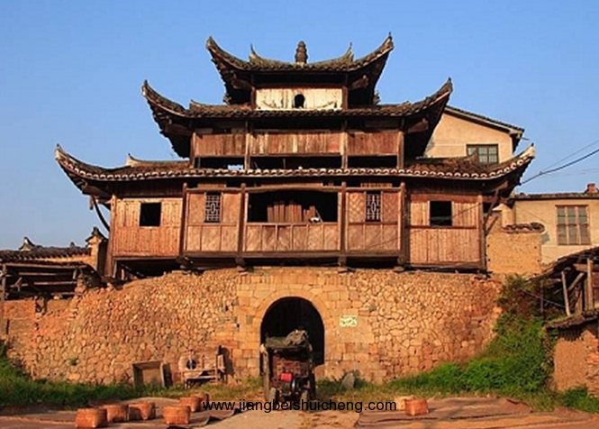 和平古鎮(zhèn)現(xiàn)存東北兩座譙樓。東門(mén)譙樓是三重檐歇山式,而其他三座譙均是兩重檐的。東門(mén)譙樓,門(mén)洞用石條砌成,墻體用大塊的卵石筑成。城墻腳下的這塊“禁止搬運(yùn)、保固地方”的石頭,是和平“舊市三禁碑”之一,為清代設(shè)立。由于當(dāng)時(shí)社會(huì)地主少、農(nóng)民多,農(nóng)民每次把收成的大部分上交給地主,在青黃不接的時(shí)候,糧價(jià)上漲,地主就把大部分的糧食外運(yùn)到邵武城關(guān)或福州,造成產(chǎn)糧地變?yōu)槿奔Z地,農(nóng)民面臨饑餓的威脅,因而設(shè)此碑,并輪流放哨,規(guī)定所有私自外運(yùn)的糧食都必須沒(méi)收或低價(jià)收購(gòu),因而它起到維護(hù)當(dāng)時(shí)的糧食市場(chǎng)的作用。北門(mén)譙樓,當(dāng)?shù)厝朔Q(chēng)“武陽(yáng)樓”,版權(quán)所有山東聊城聊之旅國(guó)際旅行社有限公司,轉(zhuǎn)載必究!因它對(duì)面的山叫武陽(yáng)山,清同治年間翻修過(guò)。城門(mén)的門(mén)洞用條石砌成,比東門(mén)門(mén)洞高大。城門(mén)兩邊各保留了一段用鵝卵石筑成的明城墻,鵝卵石上長(zhǎng)滿(mǎn)青苔,漫漶的縫隙間長(zhǎng)著青青野草,四季皆有野花開(kāi)放,充滿(mǎn)了詩(shī)情畫(huà)意。風(fēng)雨譙樓,見(jiàn)證百年夕陽(yáng)煙雨;古樸城門(mén),迎送多少古鎮(zhèn)喜憂(yōu)。譙樓走過(guò)的是悠悠歲月,形容雖然殘破斑駁,留下的卻是耐人尋味的古鎮(zhèn)歷史。