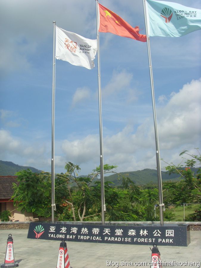 經(jīng)過一番跋涉,終于到達(dá)了亞龍灣熱帶天堂森林公園???,五星紅旗隨風(fēng)飄揚(yáng)顯得多么奪目啊。