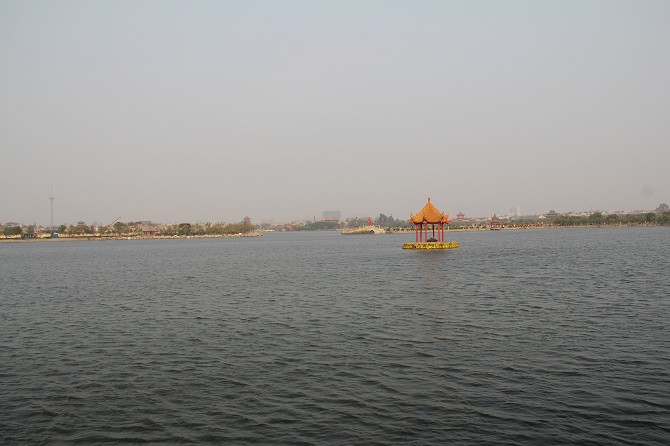 開(kāi)封像聊城一樣依水而眠,見(jiàn)過(guò)東昌湖的秀,今天領(lǐng)教了開(kāi)封水的美,不過(guò)我覺(jué)得開(kāi)封的水更有詩(shī)意:“光搖瀲滟沿珠蚌,影落滄溟照水犀,火焰逼人高萬(wàn)丈,倒提鐵筆向空題”