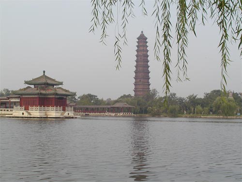 來(lái)到了開(kāi)封城,隱約好像聽(tīng)到了鳳凰傳奇的《荷塘月色》,循聲望去,整個(gè)開(kāi)封城好像是淡綠色的,綠色的涼蔭下擺著竹椅,青花瓷的蓋碗里泡足了勁兒的毛尖兒,聽(tīng)著音樂(lè)喝著茶,仿佛世界要在這一刻停止……朋友都說(shuō)我來(lái)到這兒好像著了迷一樣,呵呵,然而這座城市又是七彩的,它讓我們無(wú)比熱愛(ài)菊花,古塔,湖光山色,樸實(shí)民居,厚重古典的老城,明凈秀麗的景區(qū),流光溢彩的新區(qū),整個(gè)開(kāi)封都是彩色的。