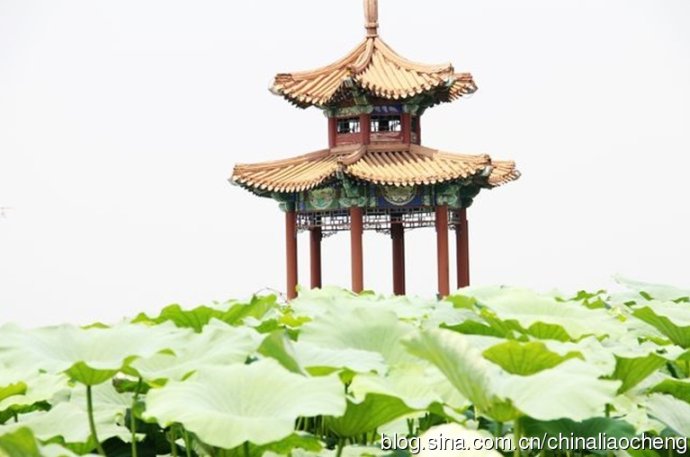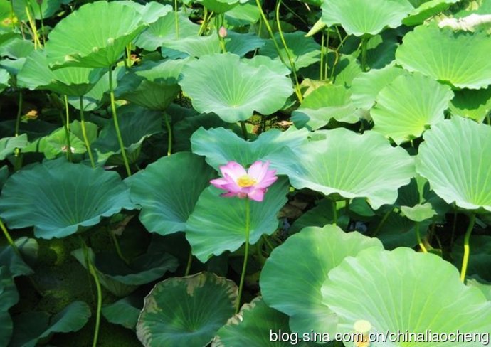 一個小亭子在滿園的荷葉中,顯得是多么挺拔啊