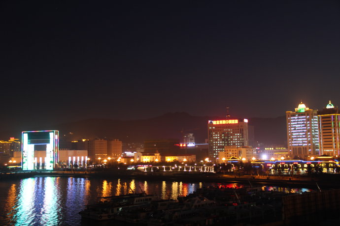 威海碼頭的夜景更讓人們向往,附近高樓在海中折射出的倒影,讓威海碼頭顯得無光十色,也讓我體會(huì)到了什么是真正的燈火闌珊。