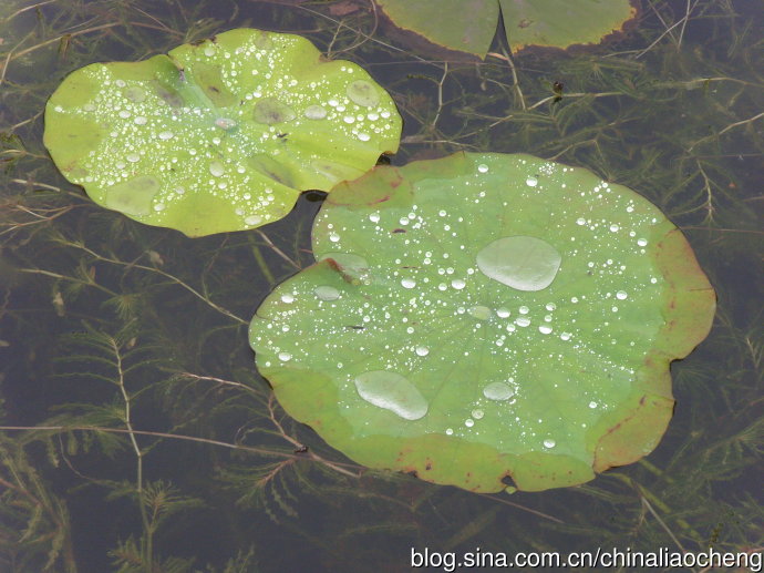 看,露珠在碧綠的荷葉映托下,顯得是多么的晶瑩碧透