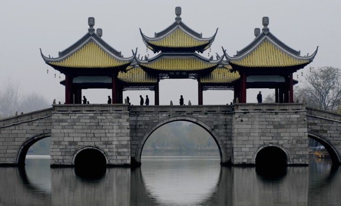不知不覺中,我們已經(jīng)進(jìn)入了二十四橋景區(qū)。“二十四橋”出自唐代著名詩人杜牧的詩句“青山隱隱水迢迢,秋盡江南草未凋;二十四橋明月夜,玉人何處教吹蕭”。