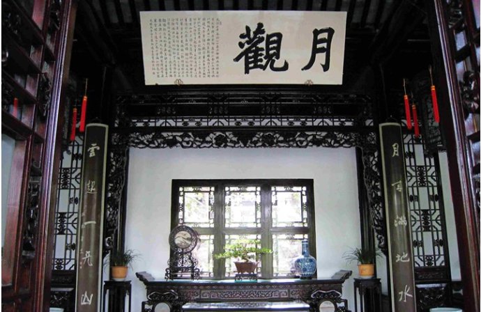 月觀坐西朝東,前臨開闊的湖面,每當(dāng)皓月東升,憑欄而立,天上水中的兩個(gè)月亮交相輝映,我們就能體會(huì)到這“月來滿地水,云起一天山”的美妙意境。人們常說“月色如水”,在這里,月光和湖水相溶,云影和山影相連。這副由鄭板橋撰寫的 對聯(lián)恰到好處描繪出了月觀這獨(dú)一無二的迷人月夜。