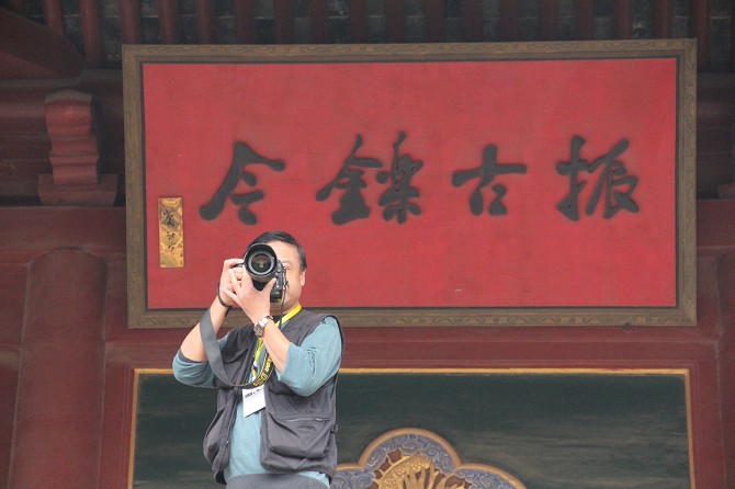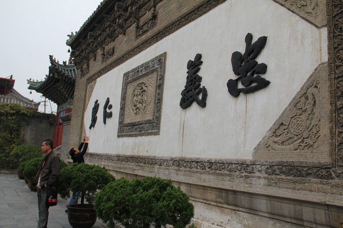 照壁的背后是他書寫的“忠、義、仁、勇”四個大字,成為會館一景,不少游人在此駐足留影紀(jì)念