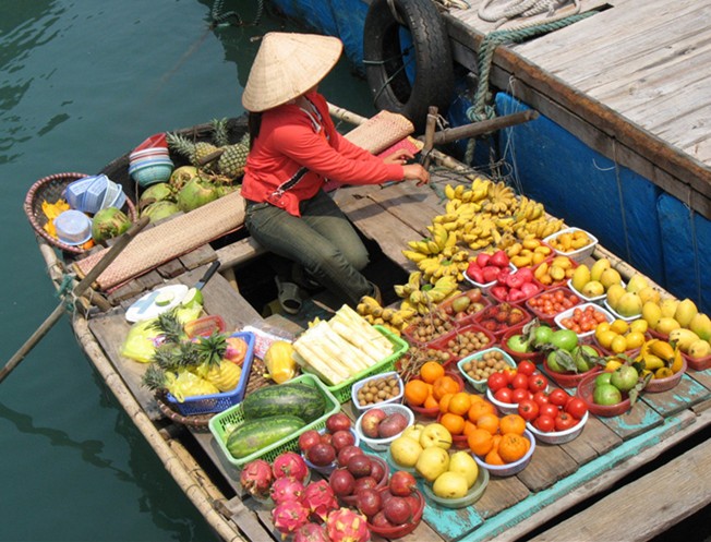賣水果的小船,雖然船不大,但商品琳瑯滿目