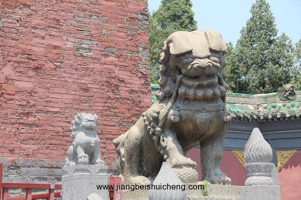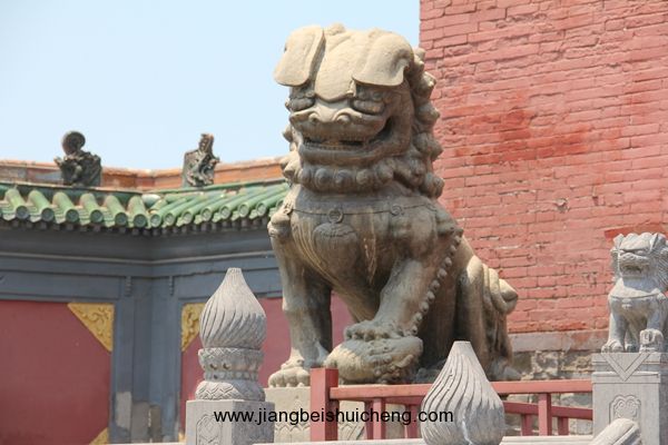 中華門外兩個石獅守衛(wèi),栩栩如生,為清代雕刻的代表作。東側(cè)雄獅口中,有直徑為15厘米的石雕圓球,西側(cè)雌獅前蹄按一小獅,工藝精巧,獨(dú)具匠心。