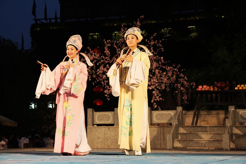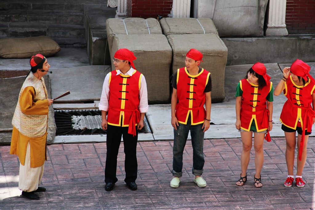 看著演員們穿著古裝表演,心里癢癢的,我也想表演,哈哈