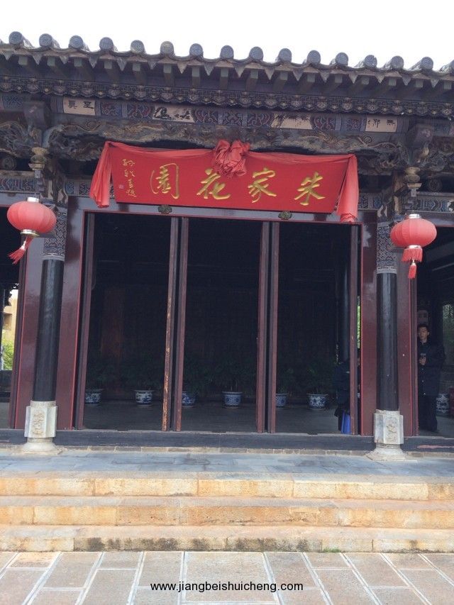 朱家花園坐南朝北,入口為垂花大門。左側(cè)沿街的10間“呆腳樓”與其后的“跑馬轉(zhuǎn)角樓”相連,是當年的帳房和資供應鋪面等,是朱家經(jīng)營進出口貿(mào)易,買賣大錫、洋紗布匹、食鹽、煙土的“朱恒泰”總商號。右側(cè)前為家族祠堂,后為內(nèi)院。祠堂前有水池,水上有戲臺、亭閣、庭蔭花木等。水池邊有右欄。