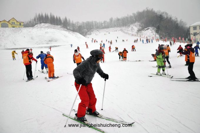 導(dǎo)游很熱情地給我推薦了教練,是一個(gè)二十多歲,面相柔和的少年。我也是青春年少,正當(dāng)年,看著教練有點(diǎn)小帥的臉,頓時(shí)浮想聯(lián)翩起來(lái)。尤其是當(dāng)教練幫我穿好一切裝備時(shí),我感覺(jué)我的臉好像都紅了一些。唉,滑雪場(chǎng)真是戀愛(ài)者的天堂,在這里,一切肢體接觸都是愛(ài)的關(guān)懷,不但不會(huì)挨耳光,運(yùn)氣好,還會(huì)得到女友感激的香吻,真不錯(cuò),不錯(cuò)呀!我還打算繼續(xù)胡思亂想,但是,教練沒(méi)有給我機(jī)會(huì)。他不停地給我講訴著滑雪時(shí)應(yīng)該注意的問(wèn)題,還囑咐我千萬(wàn)不要高估自己的能力,貿(mào)然行事;也要盡量避免和別人相撞,如果情況緊急,應(yīng)迅速降低重心,向后坐,不要隨意掙扎。。。一刻鐘后,我終于要開(kāi)始滑行了。但是雪靴又重又硬,腳穿在里面一點(diǎn)也不可以彎曲,我抱著雪撬、拿著雪杖好不容易才挪到了可以滑雪的好位置。但剛一出腳,就摔了個(gè)狗吃屎,教練沒(méi)有笑我,輕輕扶我起來(lái),說(shuō),開(kāi)始滑行前,身體要往前傾,雙腳與肩同寬并平行,雙手握住雪杖傾斜著往身后推,先慢慢地在平坡上滑行,找到感覺(jué)后,再加速。另外,要停下來(lái)時(shí),就把滑雪板成“八”字形,這樣不易摔倒。我按照教練說(shuō)的,循序漸進(jìn),不急不躁地滑動(dòng)起來(lái),雖然一開(kāi)始還是會(huì)不斷摔倒,但是漸漸地我就掌握住了要領(lǐng),即使不能快速滑行,也算是可以獨(dú)立一人支撐了。我欣喜于自己的進(jìn)步,為了犒勞自己,便卸下重重的殼,買了一些當(dāng)?shù)靥禺a(chǎn),麻辣燙、煎餅什么的,坐在場(chǎng)地邊緣,欣賞起別的滑雪者來(lái)。