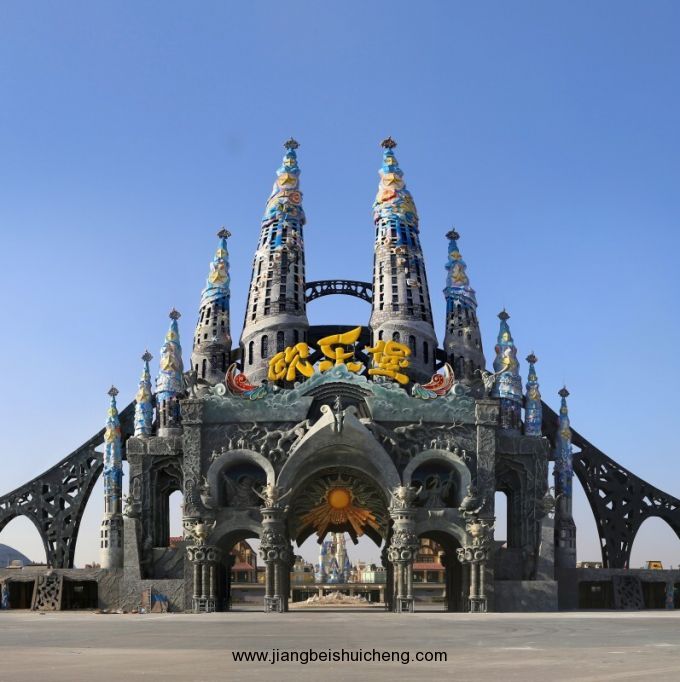 景區(qū)入口處——歡樂凱旋門,東西橫跨180米,高59米,是世界主題樂園中規(guī)模最大并充滿魔幻智慧色彩的地標(biāo)性建筑,充分展現(xiàn)出世界之最的恢宏磅礴氣勢(shì)。