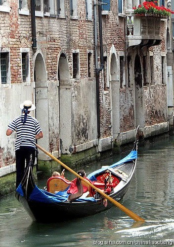 意大利的威尼斯建于島嶼之間,河流即街道。人們出門則乘坐岡朵拉。剛朵拉的造型獨特,裝飾華美,兩頭翹,底部平,狹長,專供游客抒情作秀。