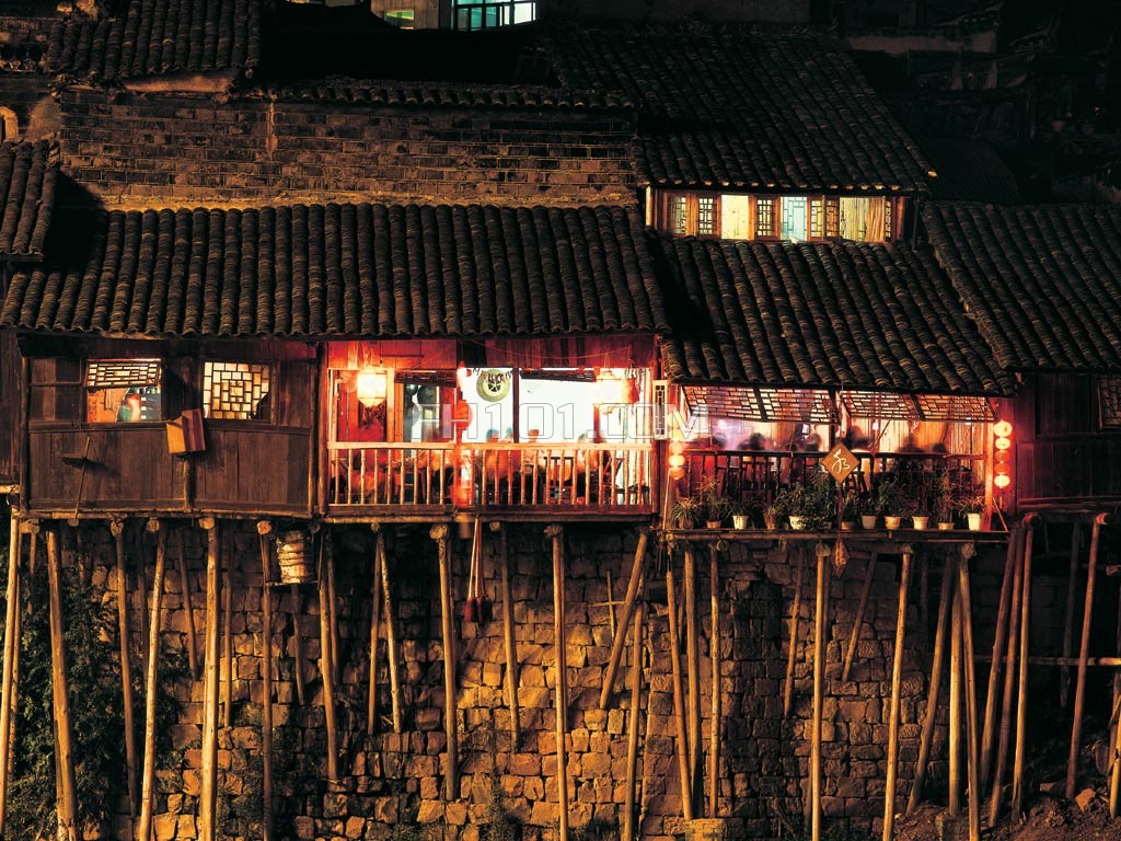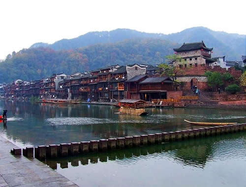 鳳凰古城始建于清康熙四十三年〔1704年〕,歷經(jīng)300多年的風(fēng)雨滄桑,古貌猶存?,F(xiàn)東門和北門古城樓尚在。城內(nèi)青石板街道,江邊木結(jié)構(gòu)吊腳樓,以及朝陽宮、古城博物館、楊家祠堂、沈從文故居、熊希齡故居、天王廟、大成殿、萬壽宮等建筑,無不具古城特色。古城以古街為中軸,連接無數(shù)小巷,溝通全城。古街是一條縱向隨勢成線、橫向交錯(cuò)鋪砌的青石板路,自古以來便是熱鬧的集市,如今更加生機(jī)勃勃。鳳凰古城的標(biāo)志性建筑之一虹橋,原名臥虹橋,歷史悠久。鳳凰古城北門城樓本名“碧輝門”,采用紅砂條石筑砌,既有軍事防御作用,又有城市防洪功能,是古城一道堅(jiān)固的屏障。鳳凰古街兩邊建筑飛檐斗拱,店鋪陳設(shè)著琳瑯滿目的民族工藝品,濃濃的古意古韻,透出古街深厚的民族文化底蘊(yùn)。