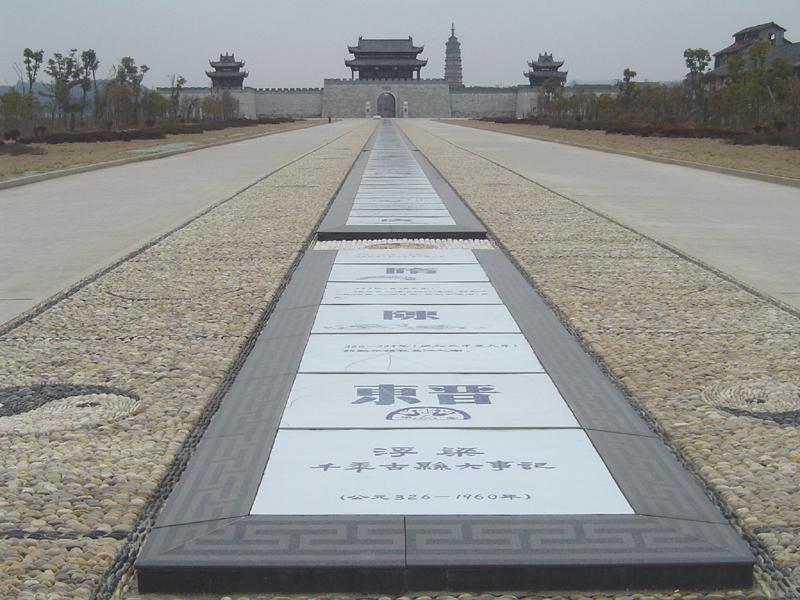 驅(qū)車來到浮梁古城前,首先映入游人眼簾的是一座灰色上書“浮梁”二字的石牌坊。走過牌坊,進(jìn)入了浮梁古城風(fēng)景區(qū),這時(shí),展現(xiàn)在面前的是一座長達(dá) 312米,以貼地瓷磚建造的浮梁歷史文化長廊,由216塊青花瓷板鋪就而成。這是一本史書,讓人們得以瀏覽浮梁千余年厚重的歷史文化。